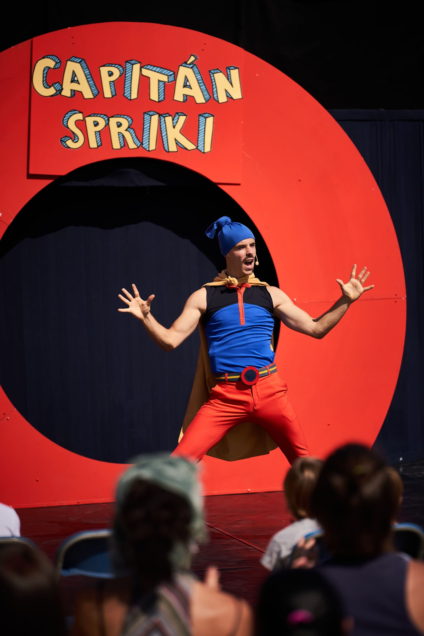 ‘Capitán Spriki, tu superhéroe de confianza’ es un espectáculo de circo humorístico donde un excéntrico superhéroe salvará la vida a los asistentes de las formas más divertidas y surrealistas. Acrobacias, canciones, danza y proyecciones audiovisuales que fusionan la realidad con la ficción son los ingredientes de sus aventuras. Este quijotesco personaje nos hará reír mientras reflexionamos sobre el devenir del mundo, transmitiéndonos valores tan importantes como el diálogo, la tolerancia, el cuidado mutuo, el reciclaje y el respeto a la naturaleza. Existe un dossier pedagógico del espectáculo con actividades para escuelas. Existe la posibilidad de realizar un taller paralelo al espectáculo sobre reciclaje de dos horas de duración.